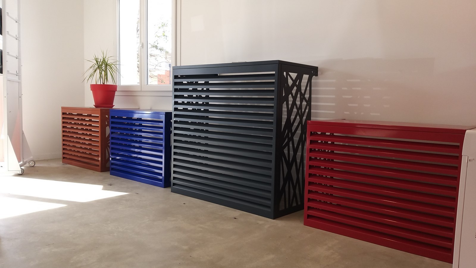 Plusieurs modèles de caches climatisations sont visibles dans notre Show Room